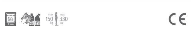 Reinig het product met een niet-schurend reinigingsmiddel met een pH tussen de 5 en 9 of met een desinfecterende oplossing van ten minste 70%. Het product kan veilig gereinigd worden in een wasruimte op 85°C gedurende 3 minuten.