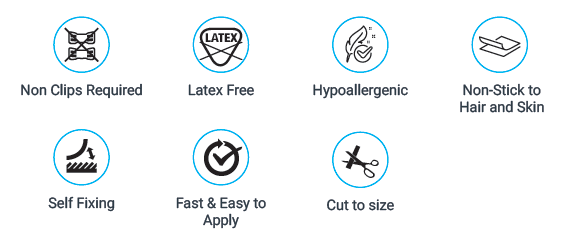 Plakt niet aan haar of huid.